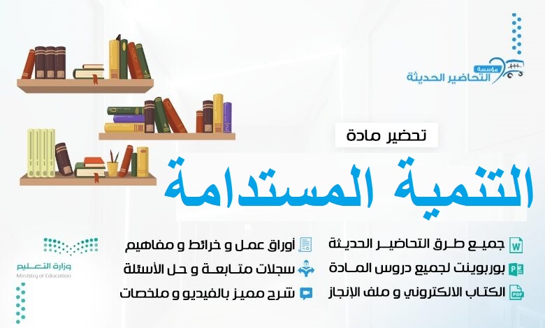 يعتبر هذا العرض أفضل تحضير لمادة التنمية المستدامة بمنهجها الجديد؛ فهو جاهز للطباعة ويُمكّن الحصول عليه بسهولة من خلال الرابط المتاح في أعلى هذا الموقع.