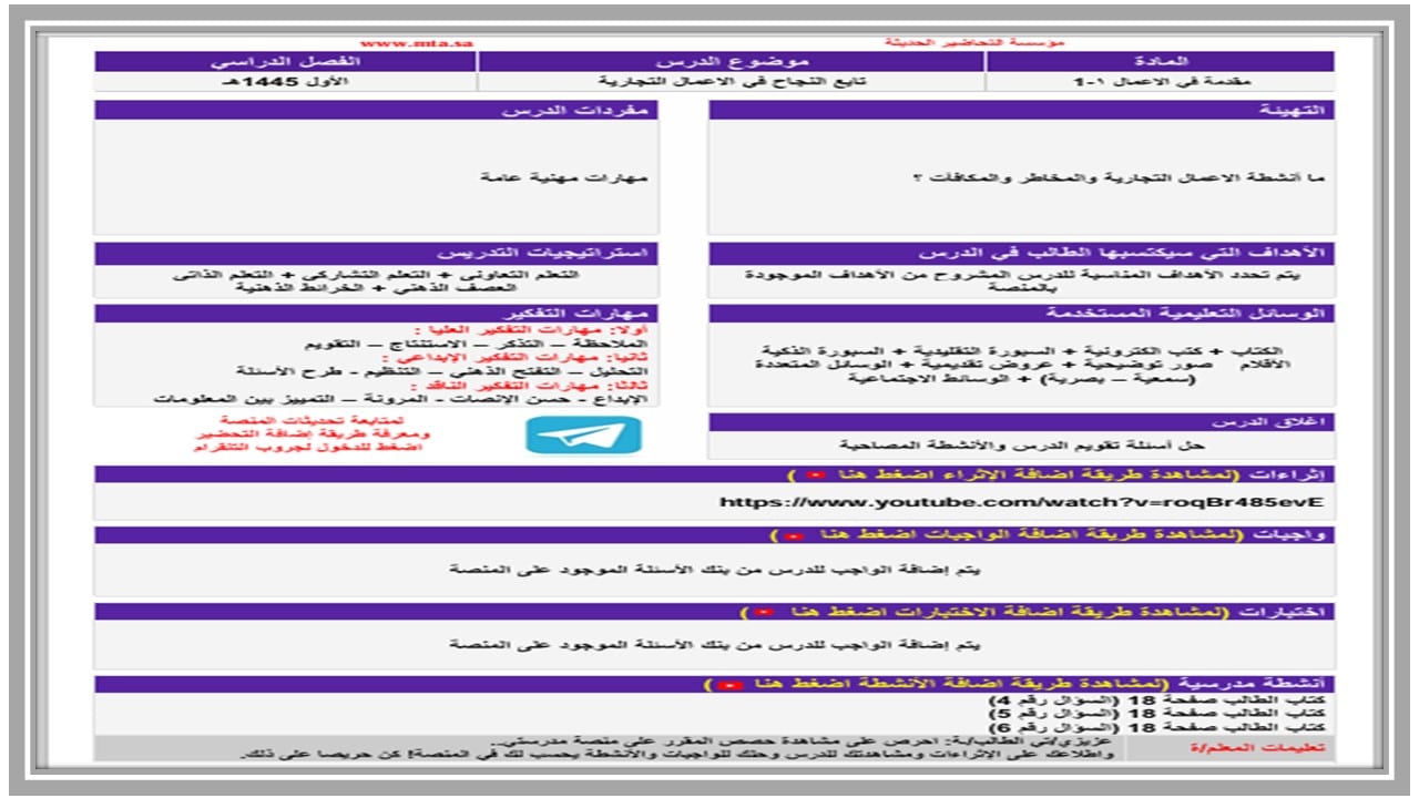 مهارات التفكير مقدمة الأعمال 1-1 مسارات الفصل الأول مدرستي مما لا شك فيه أن وزارة التربية والتعليم قررت اعتماد إعداد تحضير منصة مدرستي لصالح العملية التعليمية . يتميز إعداد تحضير منصة مدرستي التي تقدمه مؤسسة التحاضير الحديثة بالعديد من المزايا ، حيث يتضمن إعداد تحضير منصة مدرستي عددًا كبيرًا جدًا من العناصر المهمة ومن أهم العناصر التي يشتمل عليها التحضير مهارات التفكير وخاصة لمادة مقدمة الأعمال 1-1 مسارات الفصل الأول .