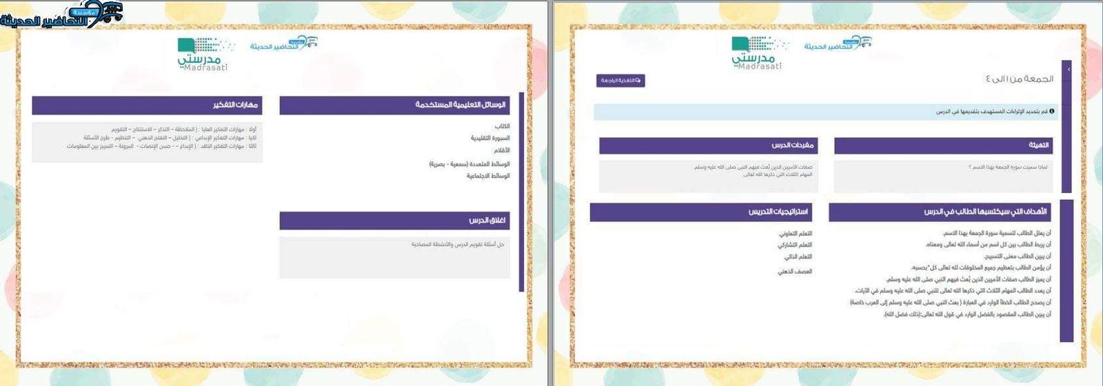 نماذج من تحضير منصة مدرستي