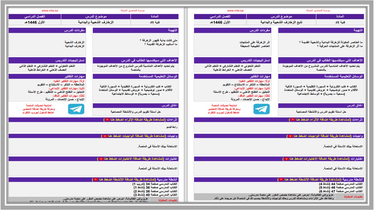 فضلا عن الخدمات الواسعة التي تقدمها المؤسسة لجميع معلمين ومعلمات المملكة قامت بتوفير خدمة في غاية الأهمية وهي خدمة إعداد خطط أسبوعية متكاملة تسهم في مساعدة كافة المعلمين على تنظيم وجدولة المحتوى التعليمي وتقسيمه على مدار الفصل الدراسي كاملا ويتم من خلالها تحديد أهم الموضوعات المراد تدريسها في كل أسبوع على حدى ، كما تقوم بتحديد الواجبات المنزلية كذلك ومن خلال هذه الخطة تسهم بدور مباشر في تعزيز دور الأسرة في عملية تعلم أبنائهم من خلال معرفة ما تم إنجازه خلال كل أسبوع على حدى ، وتم توفير هذه الخطة للمعلمين بسعر تنافسي يناسب كافة المعلمين والمعلمات فتم تقديمها بقيمة 10 ريال فقط وللمزيد انقر هنـــــــــــا .
