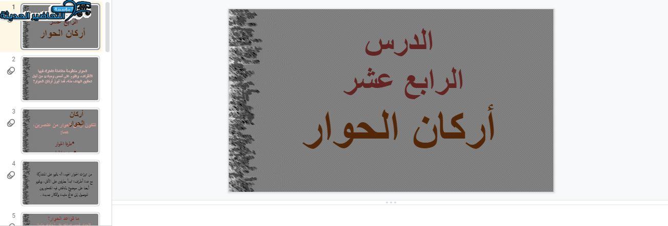 بوربوينت درس أركان الحوار مادة الأجتماعيات الأول المتوسط