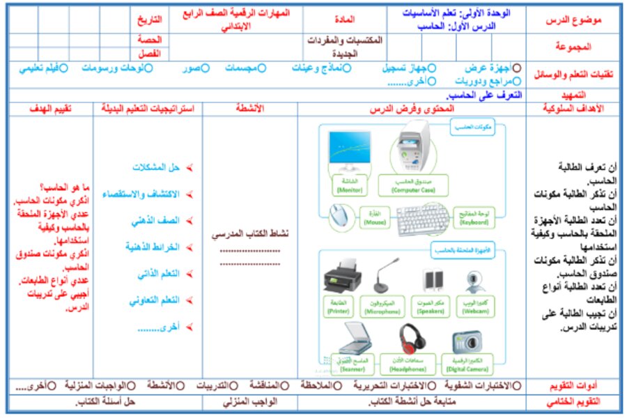 يمكنك الاطلاع على نماذج دون مقابل من تحضير مادة المهارات الرقمية رابع ابتدائي