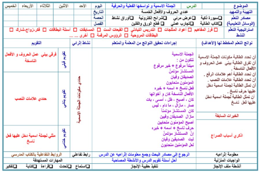 تقدم المؤسسة خططاً أسبوعية مصممة وفق الأساليب العلمية الحديثة، تغطي الفصل الدراسي كاملاً ، تساعد هذه الخطط الآباء على مراقبة تقدم أبنائهم، مما يسمح لهم بالتفاعل مع العملية التعليمية والتأكد من أن الطلاب يحصلون على أقصى استفادة من دروسهم ، تتوفر هذه الخطط أيضًا بتنسيقات PDF وWord القابلة للتحرير ، مما يسمح للمعلمين بتخصيصها وفقًا لاحتياجاتهم عن طريق إضافة المحتوى أو إزالته ، تتضمن الخطة عناوين الدروس وأهداف التعلم والمهام ، مما يساعدك على تنظيم عملية التعلم الخاصة بك بشكل فعال وسهل .