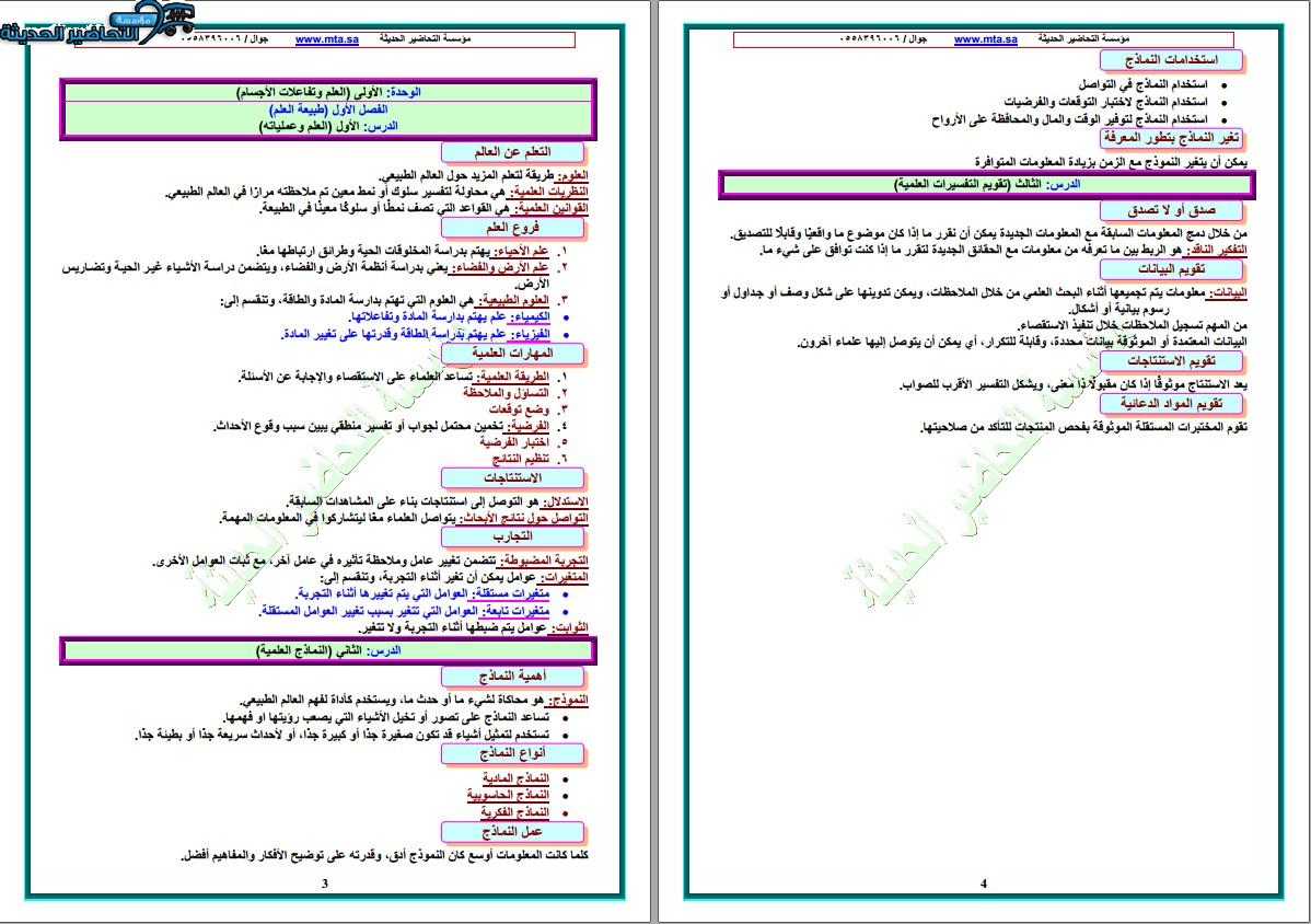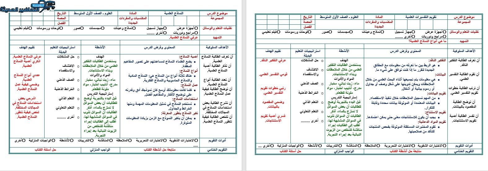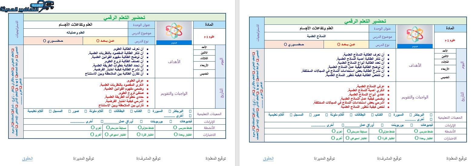 تحضير مادة العلوم مع مؤسسة التحاضير الحديثة