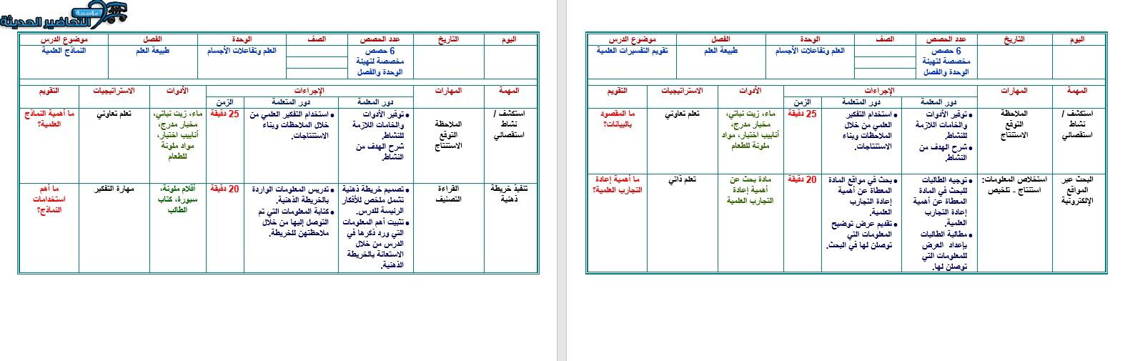 تقدم مؤسسة التحاضير الحديثة نموذج تحضير درس علوم doc قابل للتعديل في ملفات وورد، حيث يمكنك الحصول عليها عبر الايميل من خلال التواصل معنا على إيميل مؤسسة التحاضير الحديثة t@mta.sa أو من خلال رابط الشراء الالكتروني أعلى الصفحة، وكذلك يمكنك الحصول على نموذج تحضير درس علوم doc جاهز للطباعة من خلال التواصل مع فريق مبيعات موقع التحاضير الحديثة، حيث يوجد أكثر من نموذج تحضير درس علوم doc للمرحلة الابتدائية والمرحلة المتوسطة.