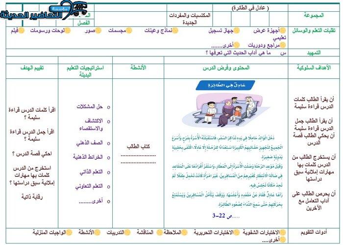 تحضير مادة لغتي درس عادل في الطائرة الصف الثالث الابتدائي فصل دراسي أول
