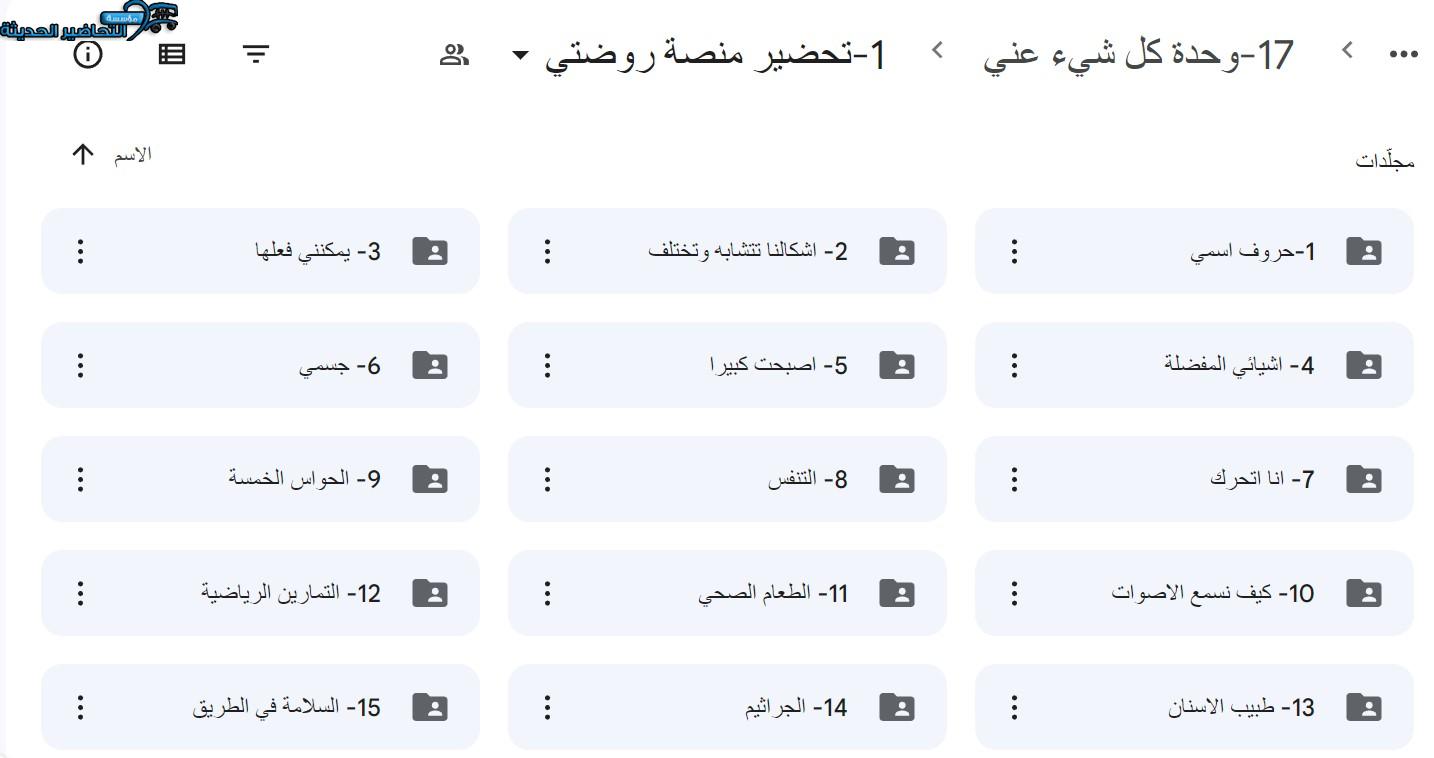 (مقدمة الروضة-أنشطة فنية-ألعاب تعليمية-تمارين حركية-البطاقات الشخصية للأطفال-مذكرات-فيديو ترحيبي بالروضة)
