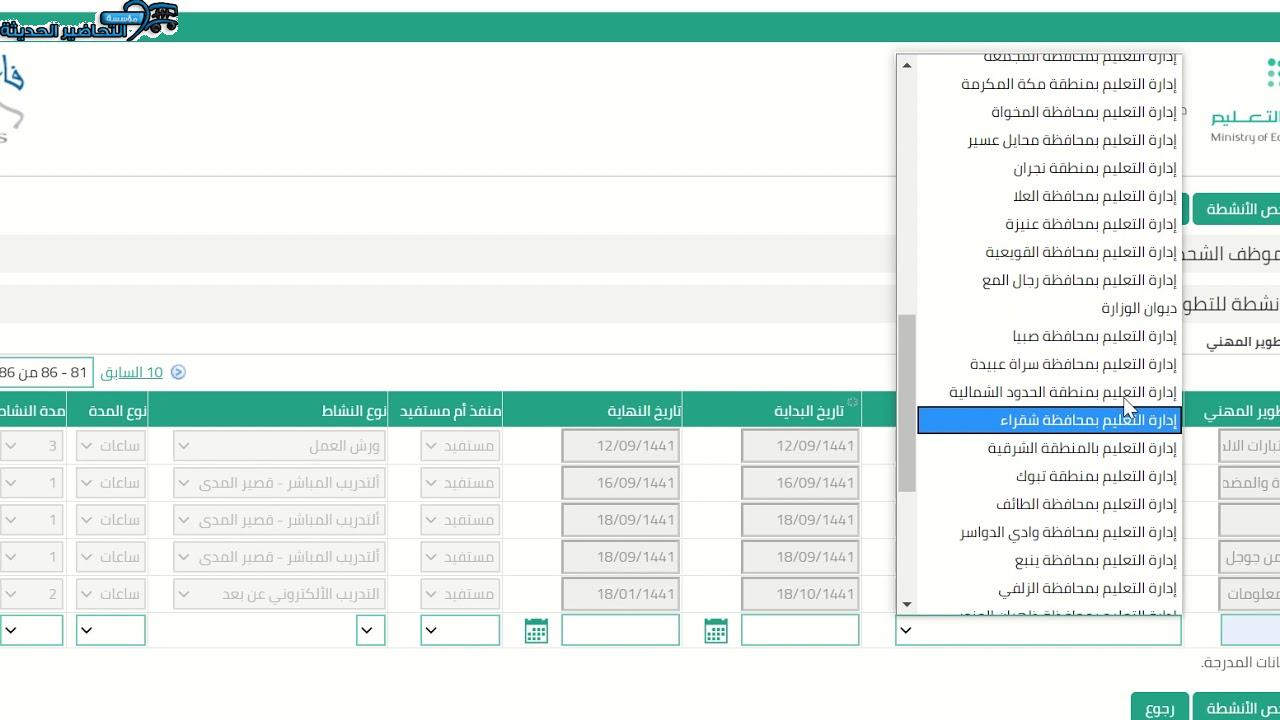 طريقة اضافة انشطة التطوير المهني في نظام فارس التعليمي