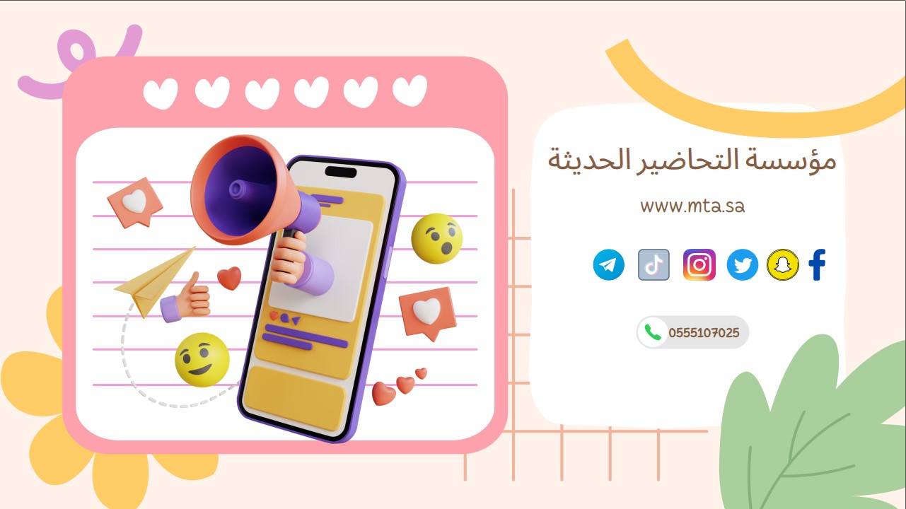 لكل من يبحث عن عروض تقديمية فريدة سواء كان ذلك في مجال التعليم أو الأعمال أو لأي غرض، تقدم شركة التصاميم الحديثة لعملائها مجموعة من عروض PowerPoint التقديمية الجذابة والاحترافية، والمصممة مع وضع التصاميم الحديثة والمبتكرة في الاعتبار تنسيق الخطوط والألوان بما يتناسب مع متطلبات العميل ويتوافق مع العرض وأهدافه. بالإضافة إلى إضافة صور عالية الجودة، يمكن أيضًا إضافة رسوم متحركة وتأثيرات ورسوم بيانية لخدمة العرض التقديمي وتكامله.