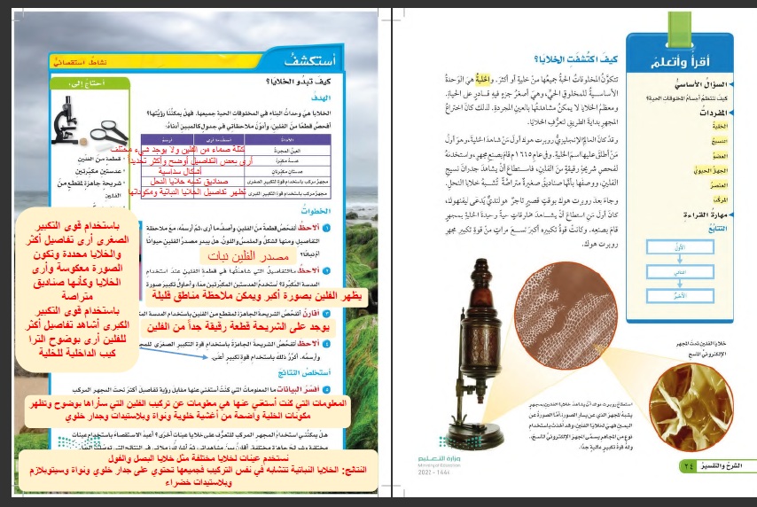 - مناقشة مع الطلاب حول مفهوم الخلية وأهميتها .