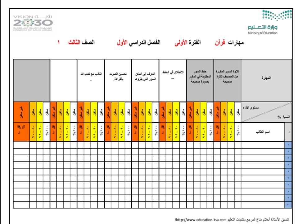 مهارات قرأن ثالث ابتدائي الفصل الاول